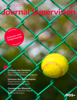 Die aktuelle Ausgabe „Grenzen und Entgrenzung“ enthält u. a. ein Interview mit der Philosophin Bettina Stangneth, die mit den scharfen Essays ihrer „Trilogie des dialogischen Denkens“ nicht nur die New York Times beeindruckt hat. Visuelles Konzept und Gestaltung des Journal Supervision: cskw